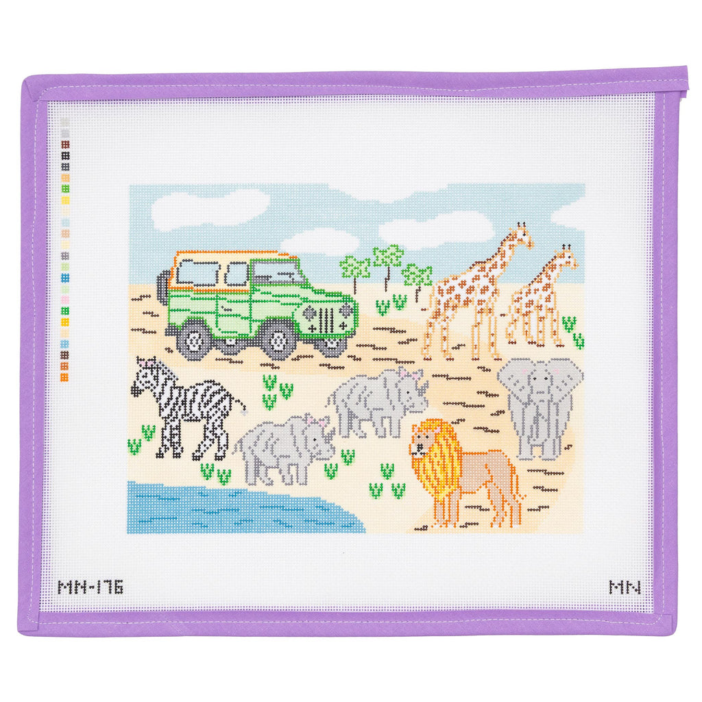 Please choose from the available kit options below. This stitch painted canvas includes one size #22 tapestry needle.