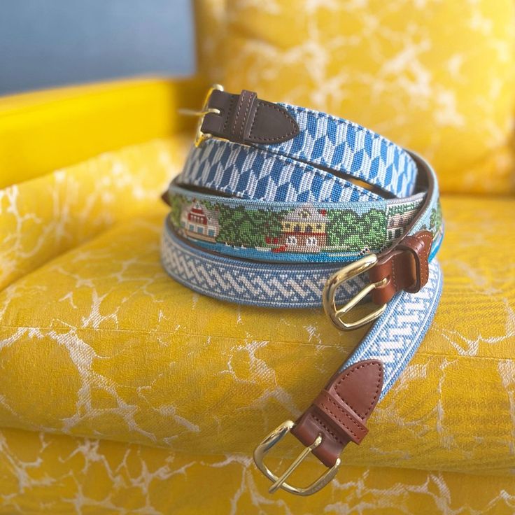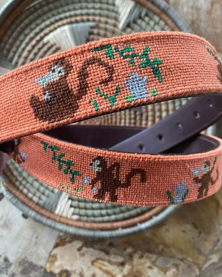 Needlepoint Belts & Keyfobs are a staple in any wardrobe, women's or men's. We can also make hatbands, bag straps, croakies, or any other leather goods you might think of!